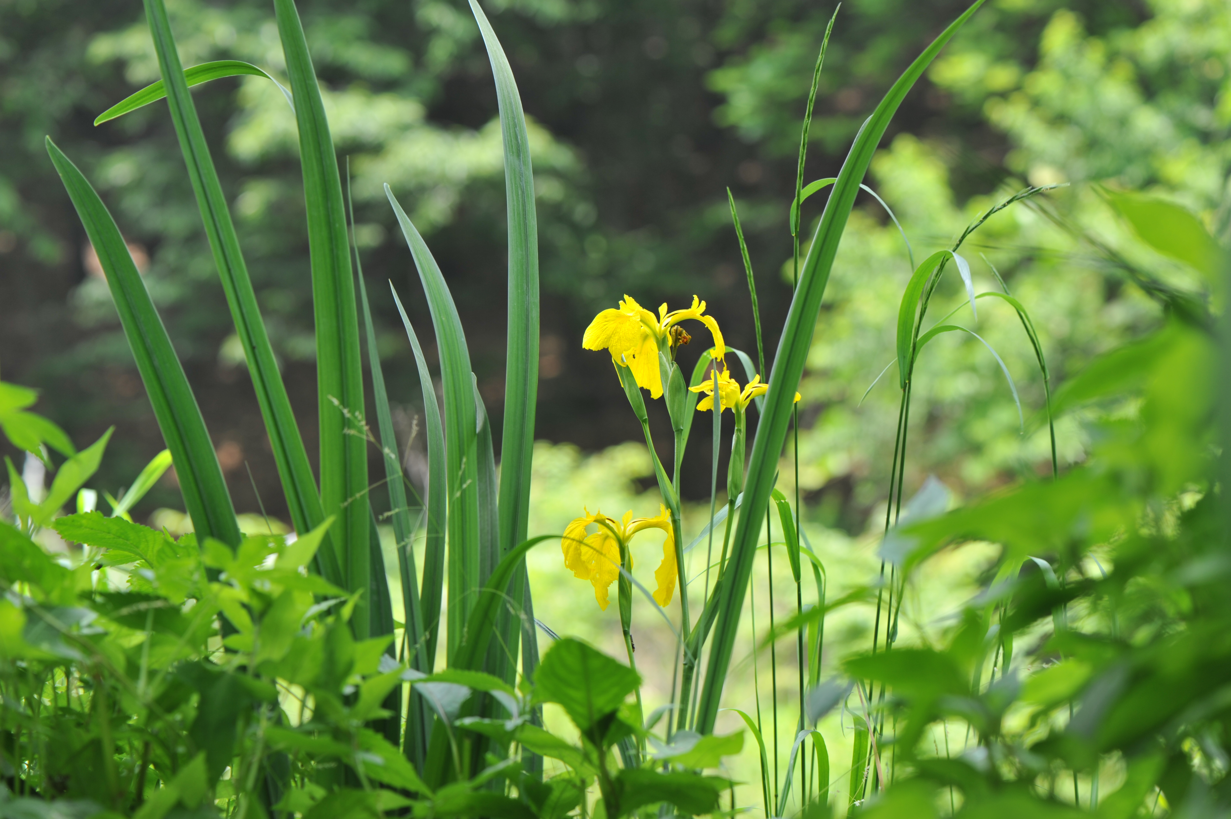 산을 오르니 골짜기 습지에 노랑꽃창포가 환하다.