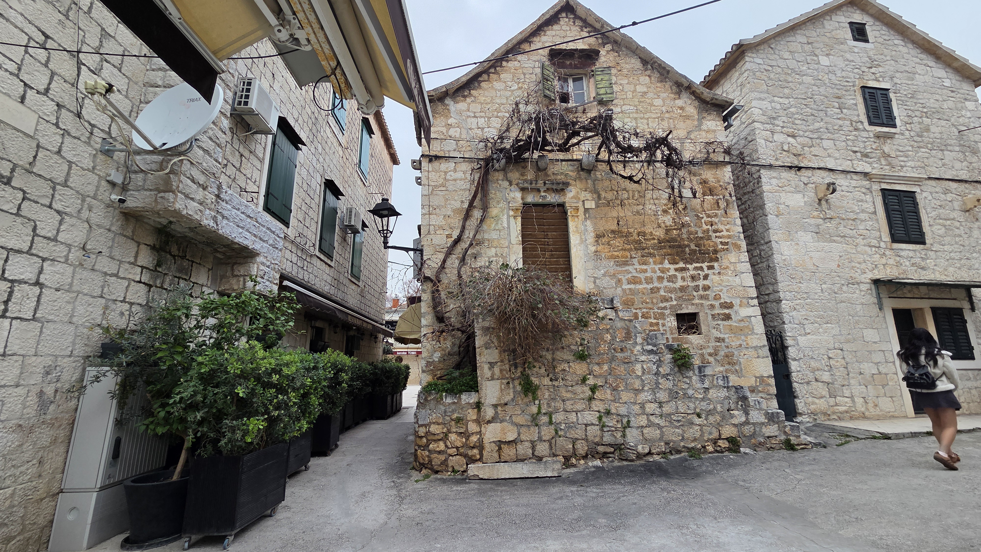 구 도심의 길은 석회암을 다듬어 깔아놓았는데, 길바닥이 닳아서 반질거린다.